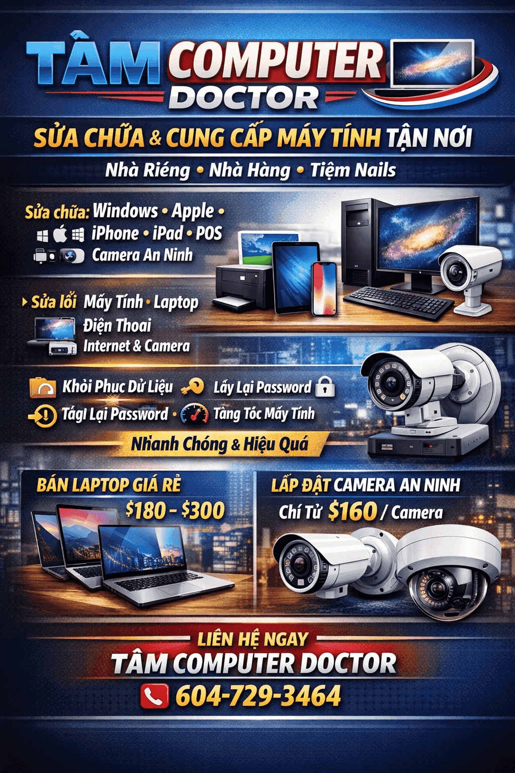 • Cài đặt & sửa chữa: Windows, Mac, iPhone, iPad, POS, Camera